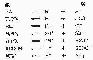 上述三种定义看起来是不同的,甚至截然相反,但是又都在使用。它们繁简不同地都可解释酸碱平衡障碍,其间的关系如何,便需说明。下列一个重要的化学缓冲反应式可以帮助说明: